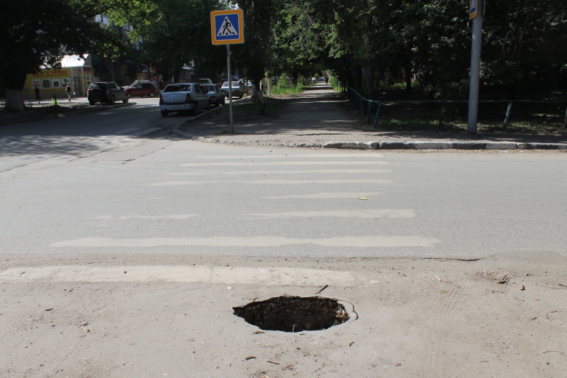 На пешеходном переходе, на пересечении улиц Шелковичной и Симбирцева в Октябрьском районе образовался провал.