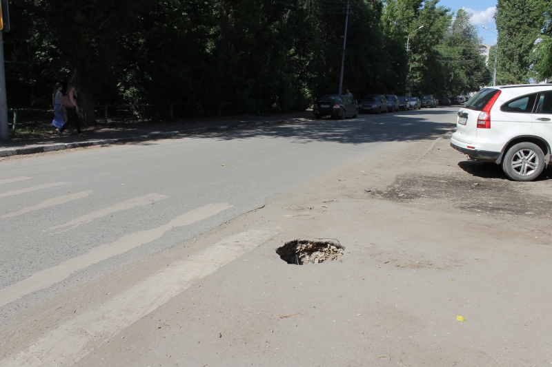 Глубокая яма поджидает неосторожных саратовцев на пешеходном переходе через улицу Симбирцева
