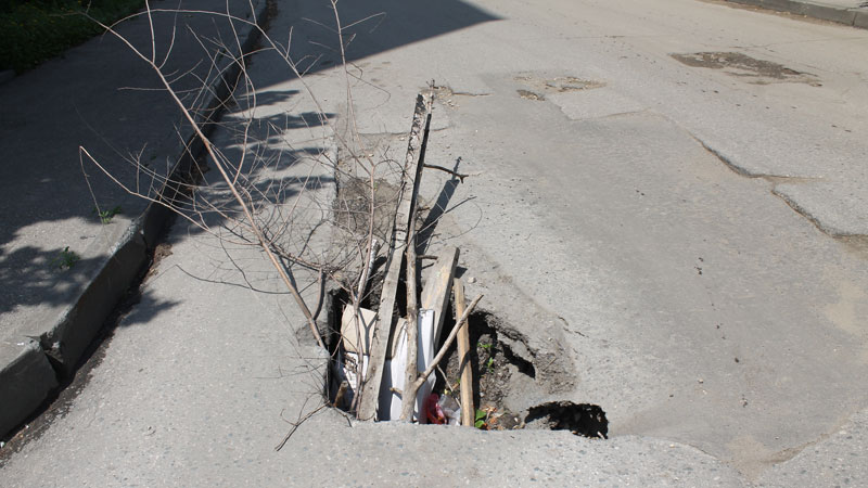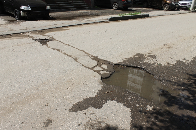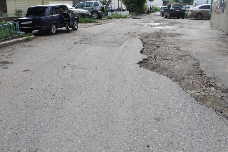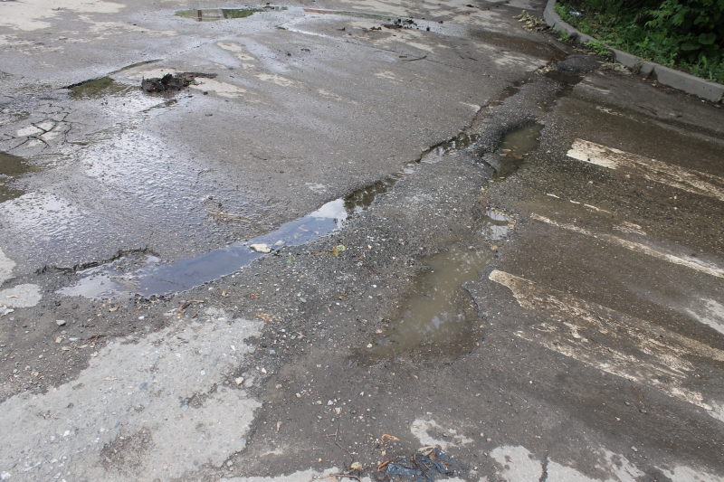Подъезды к жилым домам на Стрелке изобилуют выбоинами, просадками и выступающими люками