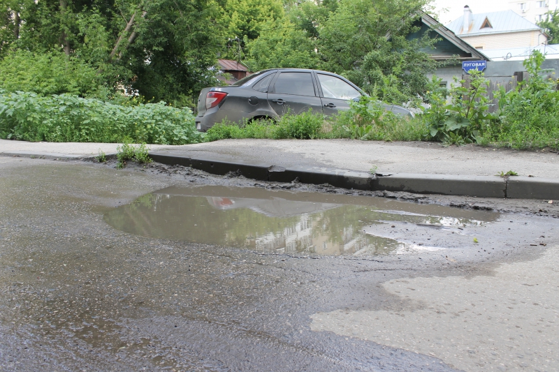 Улица Луговая — центральная дорога микрорайона, на всём протяжении от Выгонной до Молочной покрыта разнообразными ямами и выбоинами - от небольших до занявших почти всю ширину проезжей части. У дома №74 по проспекту 50 лет Октября, на восстановленном покрытии после вскрышных работ образовался провал, который местные жители обозначили сухими ветками и досками. Битым кирпичом, попытались устранить большую выбоину, образовавшую рядом с просевшим смотровым колодцем у дома №67/69. Всего несоответствующих требованиям ГОСТа люков на Луговой улице можно насчитать около десятка.