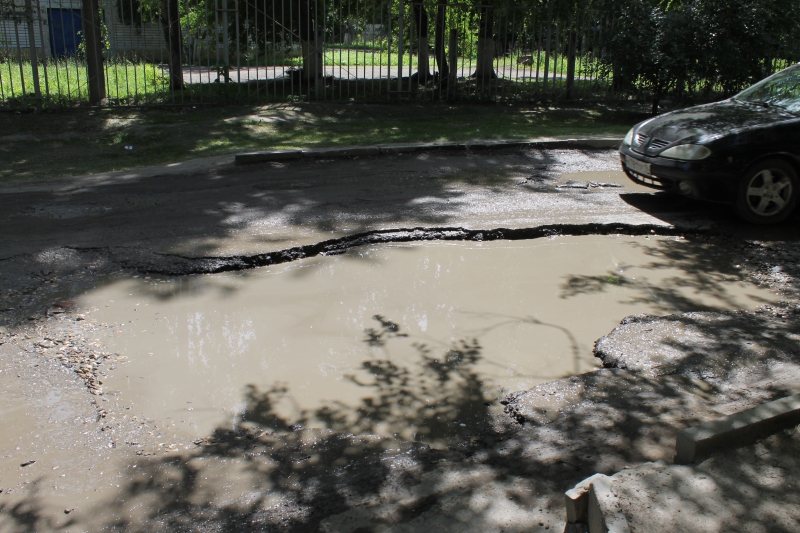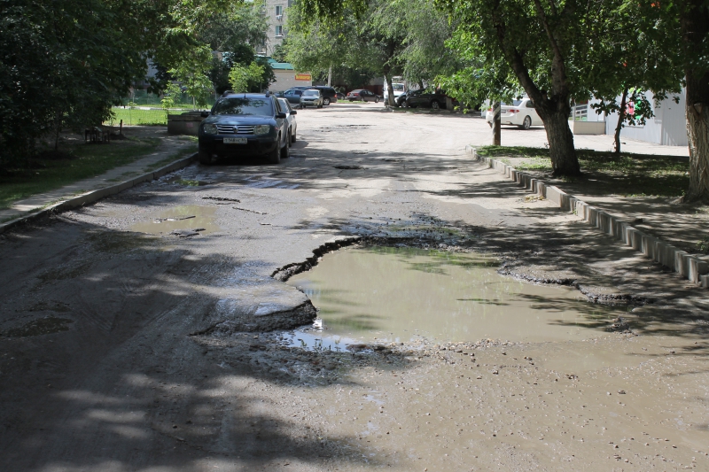 На отрезке дороги от Новоастраханского шоссе вдоль дома №1 состояние асфальта, в целом, удовлетворительное, если не считать нескольких смотровых колодцев, отклонившихся от уровня дороги. Но от дома №3 и далее вся дорога испещрена глубокими ямами и выбоинами, перекрывающими собой всю проезжую часть. Ямы постоянно заполнены водой, что не даёт возможности водителям оценить их глубину, заставляя преодолевать их буквально на ощупь.