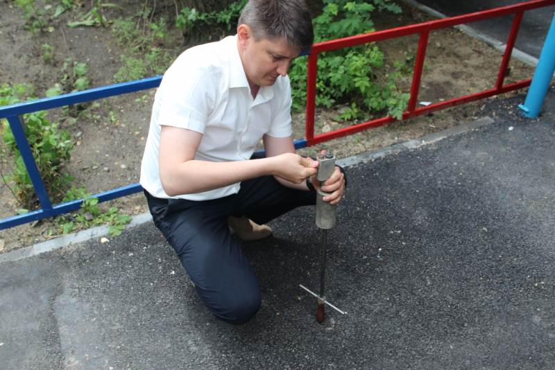 Директор «Дорожного контроля» Николай Гурин совместно с координатором проекта «Городская среда» партии «Единая Россия», директором Поволжского учебно-исследовательского центра "Волгодортранс" СГТУ Сергеем Андроновым проверили качество ремонта дворов Заводского район города Саратова, благоустраиваемых в текущем году и сделанных в прошлом. Основной целью рейда была проверка плотности песчаного асфальтобетона, который был уложен на входных группах и тротуарах. По опыту прошлого года именно такие места вызывали наибольшие опасения и нарекания. Для проверки был использован универсальный динамический плотномер, не оставляющий разрушений на покрытии.