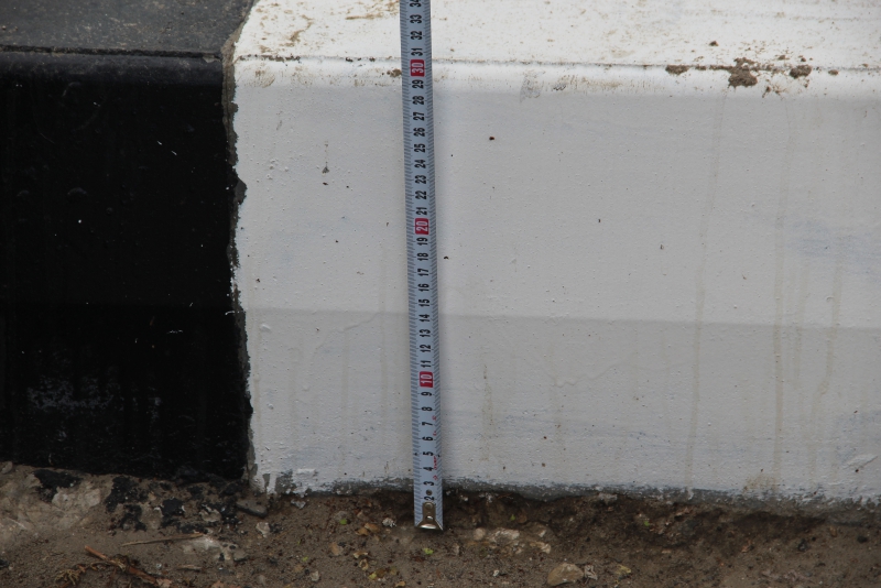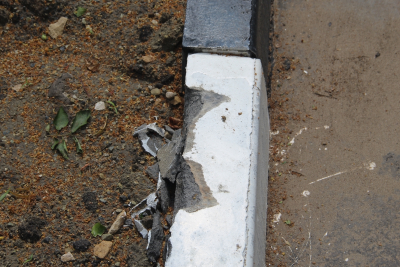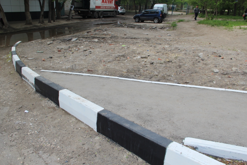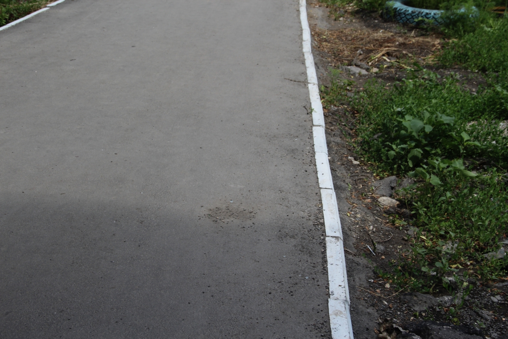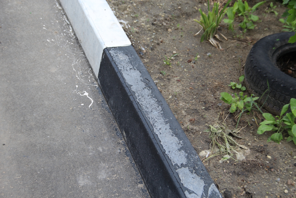 Первыми посетили дворы домов №5 и 13 по улице Тульской, ремонт которых проводился в этом году. Покрытие входных групп и тротуаров в этих дворах соответствует требованиям СНиПа «Благоустройство территорий», не допускающего значения показателя коэффициента уплотнения асфальтобетона ниже 0,93. Не вызвало вопросов и асфальтобетонное покрытие на проездах. Однако без нареканий не обошлось. Бортовой камень вдоль дома №13 по Тульской по всей длине проезда имеет уступы, отклонения и многочисленные сколы, что противоречит требованиям СНиПа. По внутренней стороне бордюра часто встречались сколы, которые остались после того, как камень пытались подправить ломом. Также спустя месяц краска, которой был покрашен борт, уже во многих местах облезла и шелушится, что свидетельствует о низком качестве применяемых материалов.