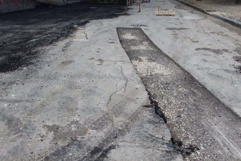 У дома №1 по Тульской «Дорожный контроль» застал работы по асфальтированию дворовой территории, здесь, как и в предыдущих дворах Заводского района, демонтажа старого покрытия не производилось, на нем лишь отфрезеровали и выровняли наиболее разрушенные участки. При этом при подготовке основания были проигнорированы некоторые глубокие и длинные трещины, которые в дальнейшем могут привести к разрушения нового покрытия. Также вопрос у проверяющих вызвало качество уплотнения выравнивающего слоя перед первым подъездом дома. Его рыхлость и выкрашивание под ногами намекали на то, что достаточного уплотнения может и не быть. Однако на этот вопрос может ответить только компания, осуществляющая строительный контроль.