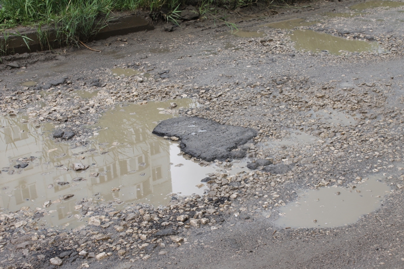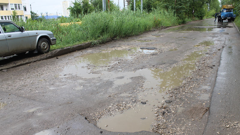 Наиболее тяжелая ситуация сложилась около дома №2, где твердое покрытие снято почти по всей ширине проезжей части. Автомобилям в этом месте приходится проезжать, вплотную прижимаясь к бордюру с одной стороны дороги, где еще остался асфальт.