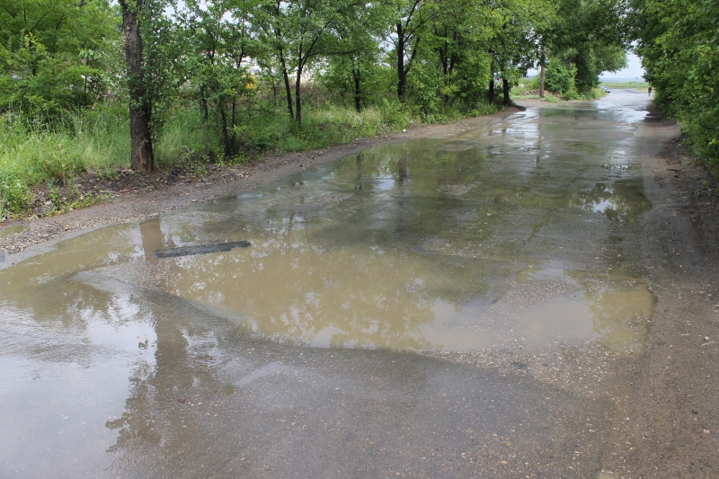 Стоящая сейчас дождливая погода демонстрирует недостатки дорожного покрытия на улице им. Мамонтовой на всем её протяжении. В многочисленных неровностях образуются широкие лужи, мешающие водителям оценить глубину препятствий. Кроме того, поток воды, идущий со стороны улицы Чехова до Топольчанской, активно размывает основание, ускоряя разрушение улицы им. Мамонтовой.