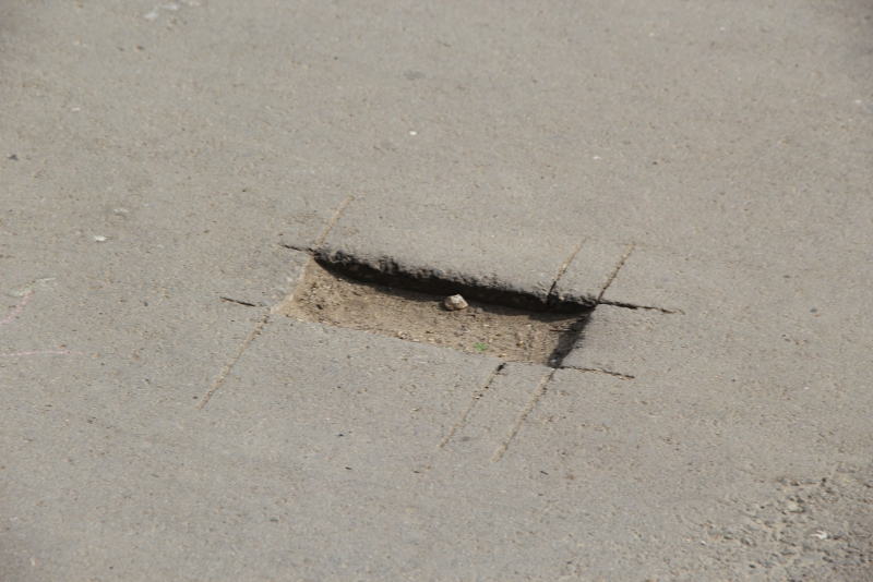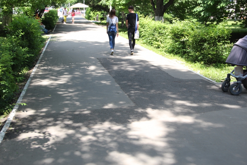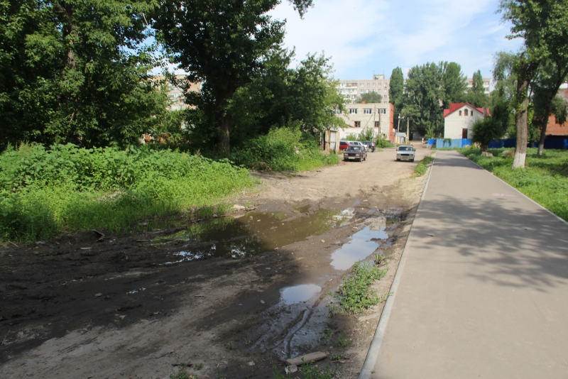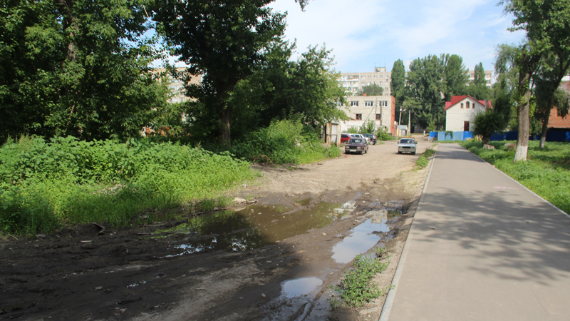 В прошлый раз больше всего нареканий вызвала пешеходная зона у ДК «Рубин», там создавалось четкое ощущение, что работы велись на скорую руку и совсем не усердно. Отметим, что за прошедшее время многие недочеты были устранены, превратив сквер в зону отдыха, а не брошенную строительную площадку. Но, к сожалению, на смену старым пришли новые разрушения. На пешеходной дорожке рядом с доской почета новое покрытие разбито до щебеночного основания. Трещины, расползающиеся по асфальту от ямы, грозят захватить значительный участок тротуара. Рядом с одной из лавочек, вдоль улицы Жуковского, покрытие не смогло устоять перед силами природы, сквозь трещины в асфальте уже начали прорастать побеги зелени. Вокруг не поднятого люка на пешеходной дорожке, вдоль все той же улицы Жуковского, разрослась трава, придавшая ярких красок обычному инженерному сооружению. Вопросы у «Дорожного контроля» остались по качеству уплотнения пешеходной дорожки вдоль улицы Высокой, покрытой следами от строительной техники и множеством небольших трещин-растяжек, что дает возможность предположить, что асфальт в этом месте укатывали уже остывшим. Поколотый бортовой камень местами покрасили, но это едва ли улучшило его внешний вид. В нижней оконечности парка вообще открывается слабо укладывающаяся в голове картина. От сквера через Жуковского ведет пешеходный переход, однако подход к нему со стороны сквера не обустроен. Саратовцы подходят к нему не по асфальту, а по земле, а в дождливую погоду попросту месят грязь. Всего метр твердого покрытия исправил бы ситуацию, но никто так и не догадался его сделать.