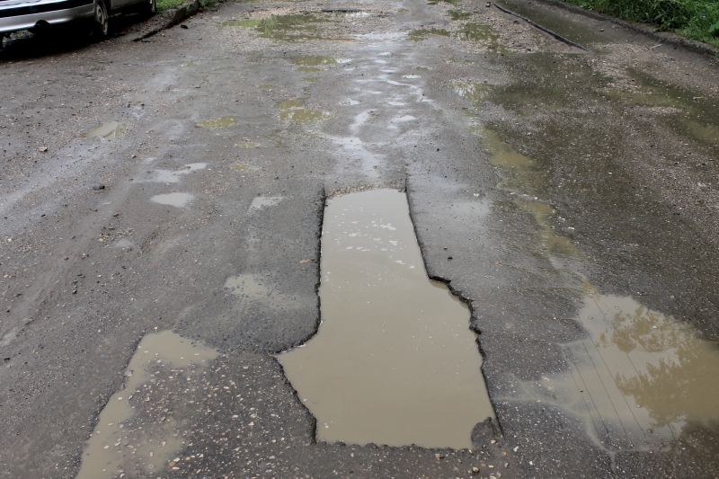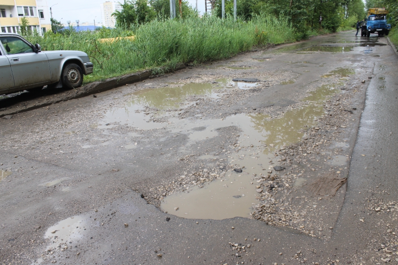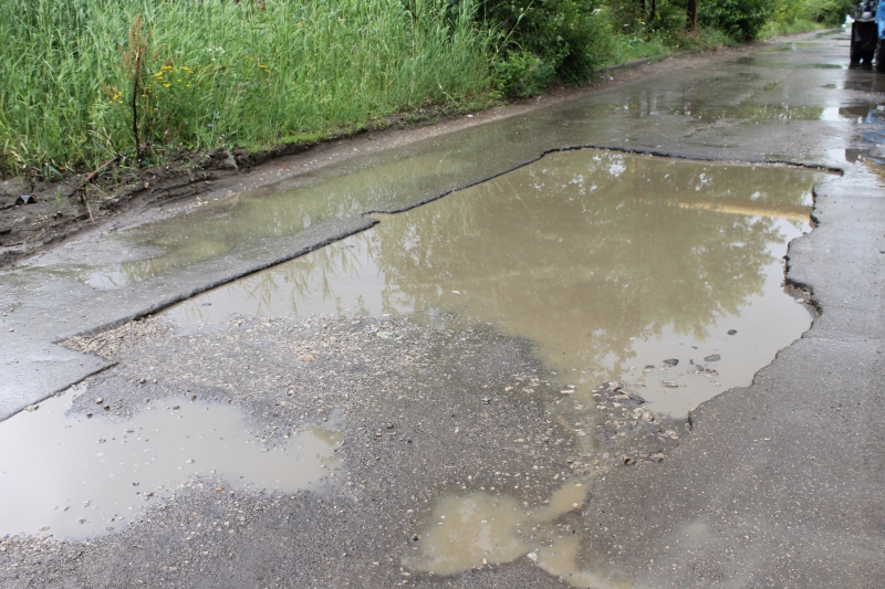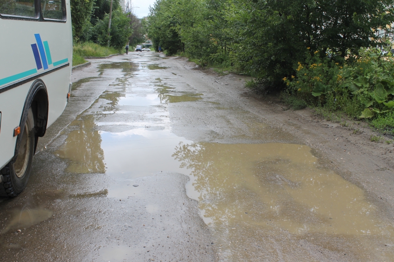 Брошенные в мае и забытые ямы сильно затрудняли передвижение автомобилей по этой улице. В дождливую погоду в них образовывались большие лужи, не позволявшие водителям оценить глубину препятствия. Наиболее тяжелая ситуация наблюдалась около дома №2, где твердое покрытие было снято почти по всей ширине проезжей части.