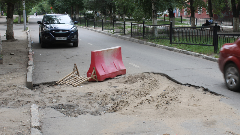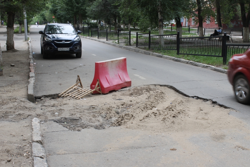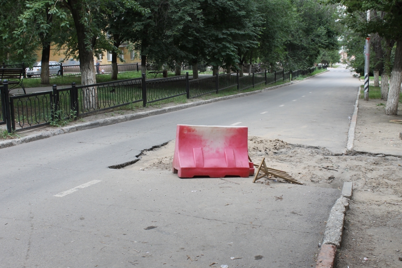 Раскоп перекрывает одну из двух полос движения и часть тротуара перед домом №3. В настоящее время на дороге перед препятствием выставлен водоналивной блок, но, по словам местных жителей, никаких работ здесь не проводилось уже несколько недель.
