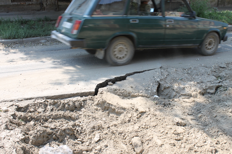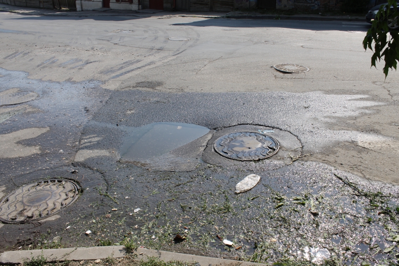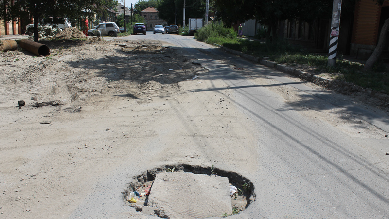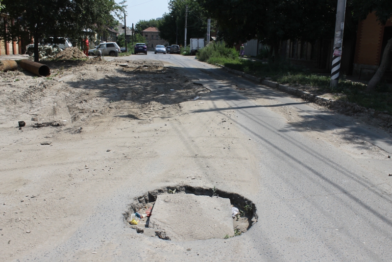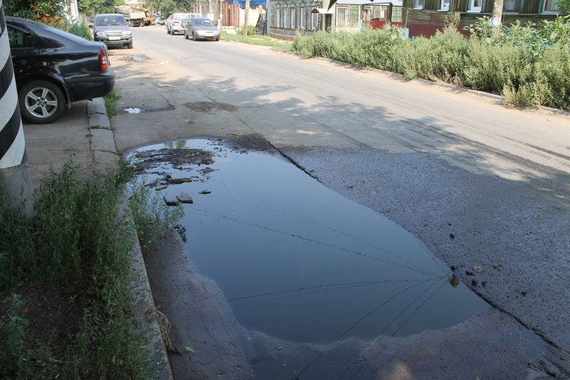 Но самое серьёзное препятствие ожидает автомобилистов напротив дома 54/56. Уже насколько недель здесь находится огромный засыпанный землёй котлован, оставшийся после работ по замене участка трубопровода, предположительно, тепловых сетей. Раскоп перекрывает большую часть дороги, оставив для разъезда транспорта всего один ряд. «А заасфальтируют – всё равно ненадолго, - машет рукой местный житель. – Они в яму большие куски снятого асфальта свалили. Начнёт крошиться, и кто-нибудь провалится рано или поздно». На дороге перед раскопом не выставлено никаких предупреждающих знаков или заграждений, что делает этот участок опасным для автомобилистов, особенно в тёмное время суток.