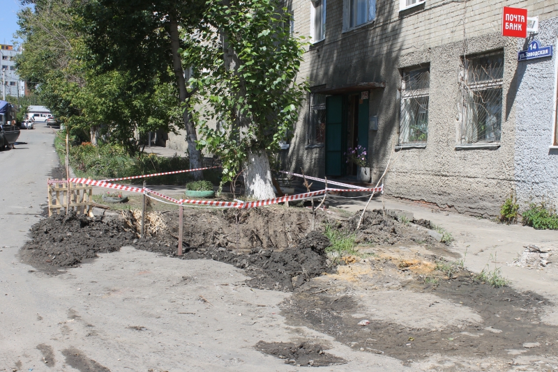 Закончить работы планировалось ко вчерашнему вечеру, но на данный момент у дома №14 по улице Заводской стоит котлован, заполненный водой, а работы у дома №53 по улице Чернышевского только ведутся, тем не менее в обоих случаях излив воды прекращен.