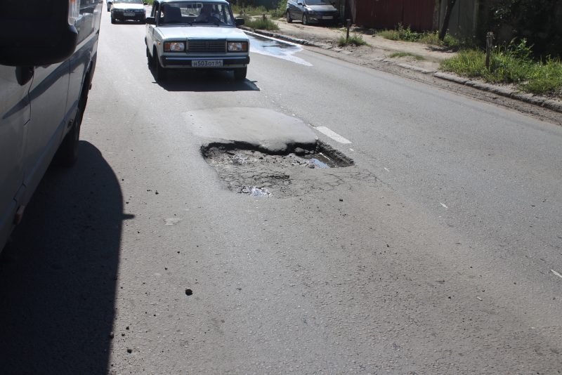 Наиболее серьёзным препятствием для автомобилистов является глубокая яма, образовавшаяся напротив дома №4. Она практически полностью перекрывает полосу движения по направлению в сторону улицы Танкистов. Водителям приходится преодолевать этот участок, заезжая на обочину дороги, либо по полосе встречного движения.