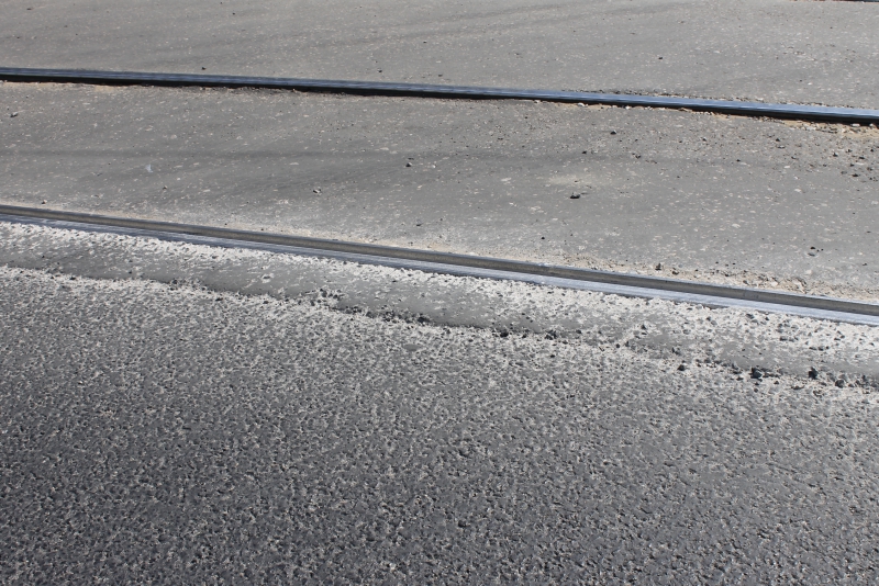 Несколько недель после ремонта дороги на Танкистов водители уродовали подвески своих автомобилей, преодолевая огромный прогал между трамвайными рельсами и новым асфальтовым покрытием - участок дороги, прилегающий к рельсам, всё это время оставался недоделанным.