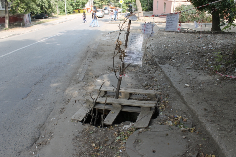 Ненормативные люки и утопленные ливневки препятствуют движению на Саперной