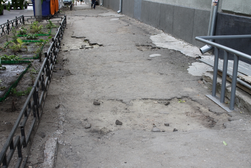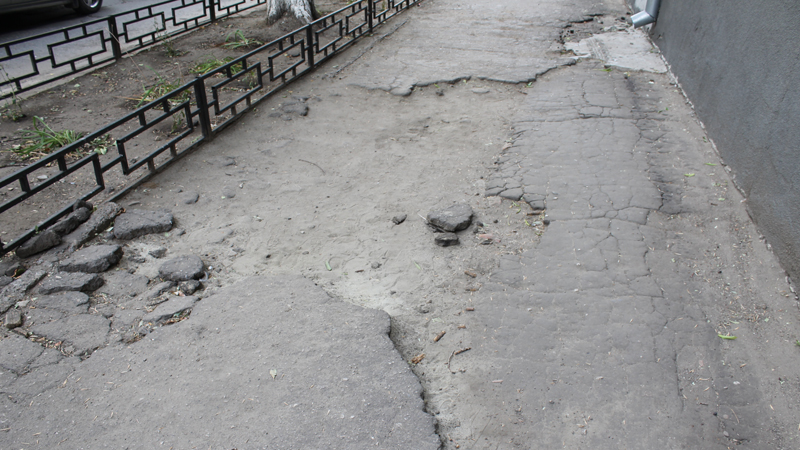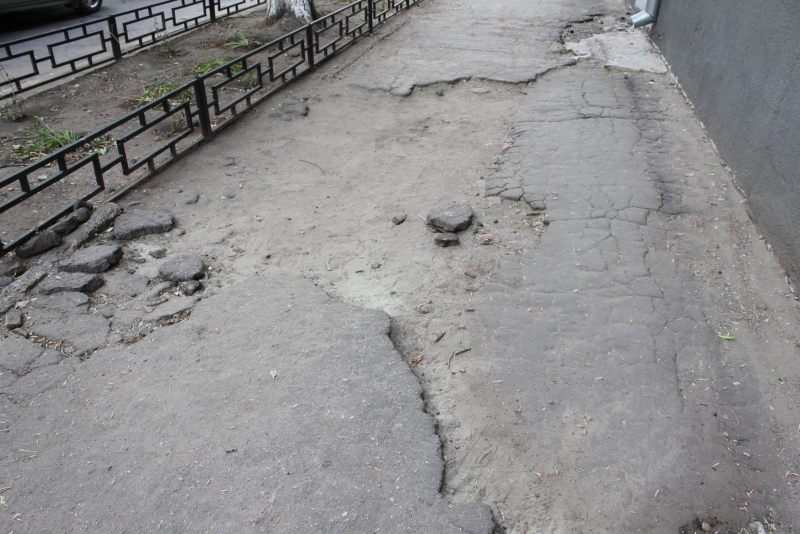 В редакцию «Дорожного контроля» обратились жители Волжского района с просьбой обратить внимание на разрушенные тротуары на проезде Котовского. Небольшая улица находится в самом центре города и проходит от Дома работников искусств (бывшего Дома Офицеров) до здания Волжского районного суда.