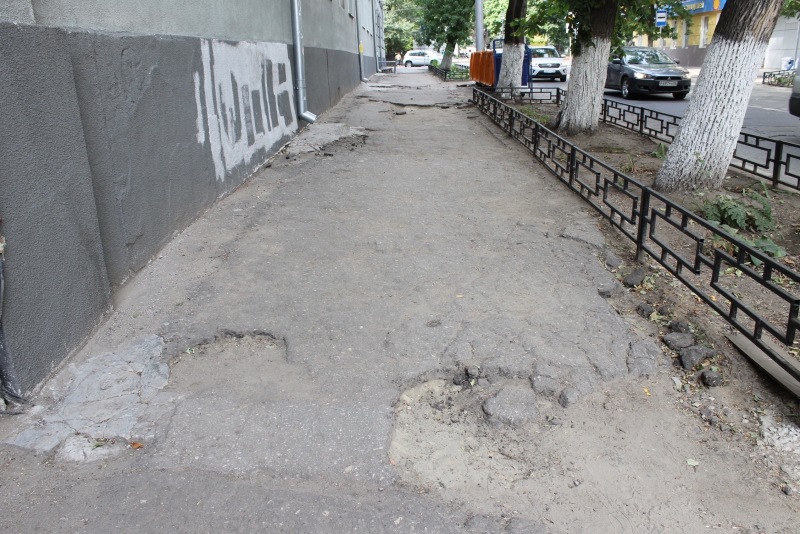 Саратовцы пожаловались на разбитый тротуар в центре города