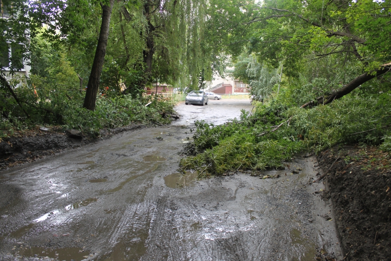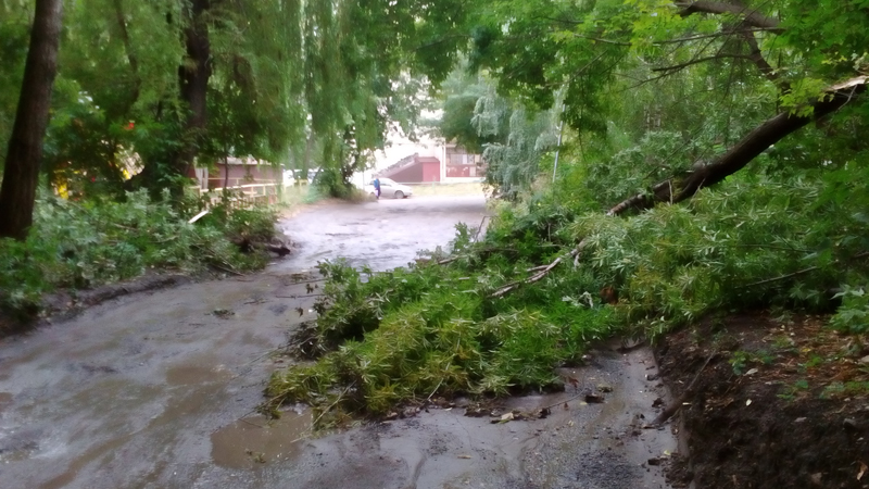 Крупный ствол дерева и ветви находятся на проезжей части напротив дома №39 по улице Наумовской, между 3-м Курдюмским тупиком и улицей Генерала Захарова. Сейчас из-за этого ЧП перекрыто более половины дороги, остался участок шириной в одну полосу, что сильно затрудняет движение.