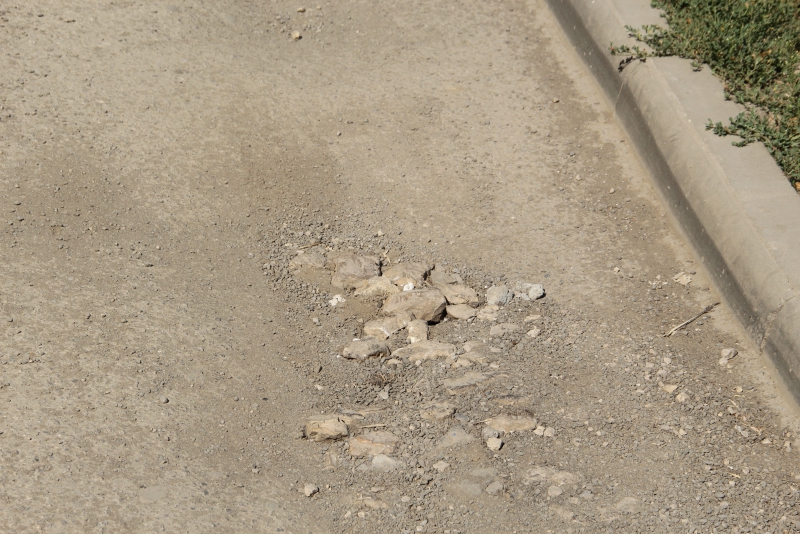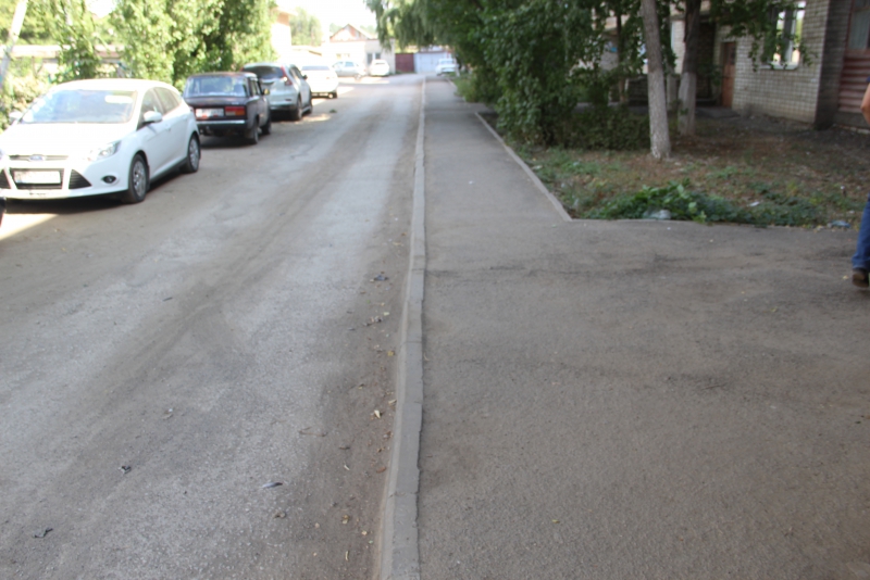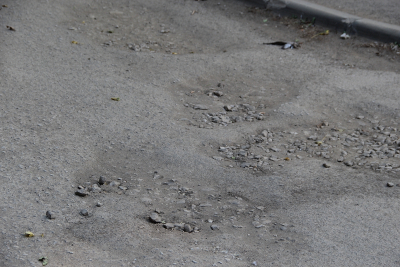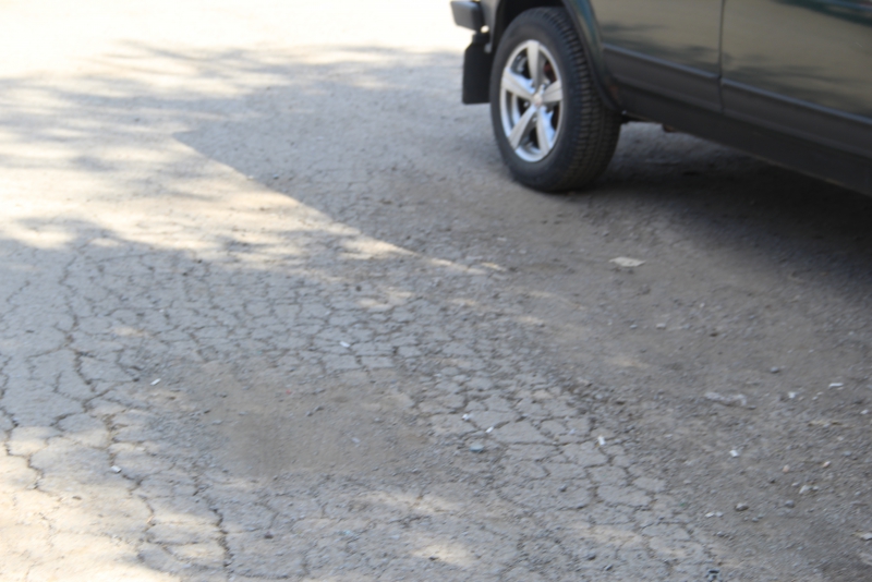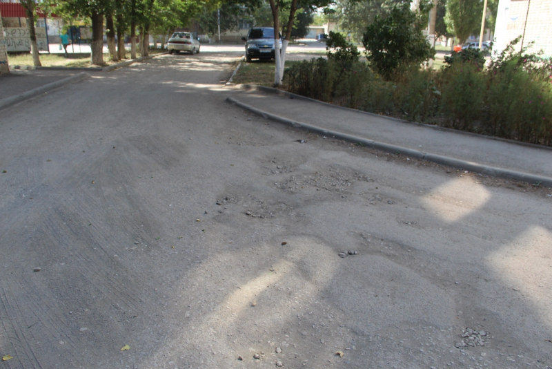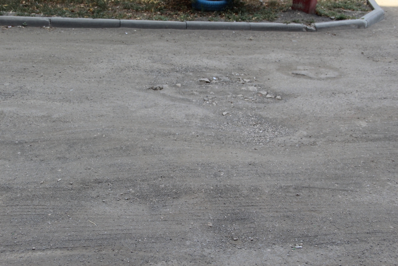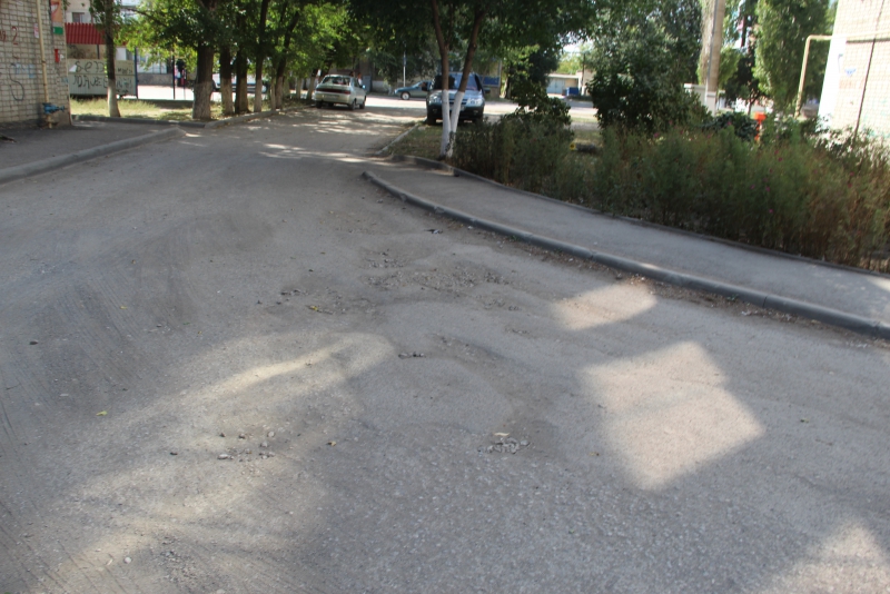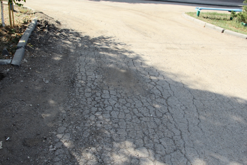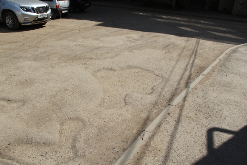 Во дворах домов №2 и 4 асфальтобетонное покрытие проезда вдоль домов пришло в полную негодность, покрывшись многочисленными крокодиловыми трещинами и глубокими выбоинами, через которые машинами начало выбиваться уже щебеночное основание. Тротуары, отмостки вдоль домов и входные группы покрыты слоем вышелушивающегося асфальта, в котором дети могут играть вместо песочницы. Установленный бордюр также не выдерживает никакой критики, торчащие во все стороны бортовые камни даже не подразумевают соблюдение хоть какой-то прямолинейности.