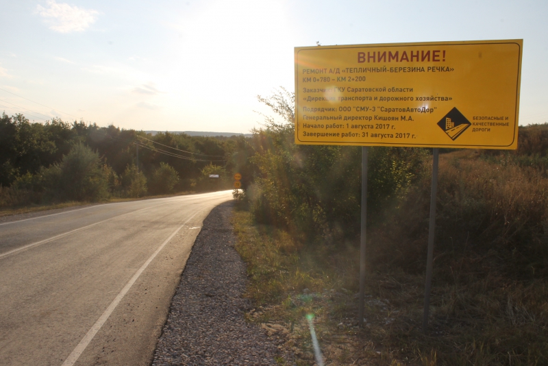 В своих репортажах «Дорожный контроль» не раз упоминал автомобильную дорогу, связывающую посёлок Тепличный с селом Березина речка в Саратовском районе. «Дорога не видела ремонта несколько лет, дорожное полотно пришло в негодность, ездить совсем невозможно», - сообщали местные жители в марте этого года.