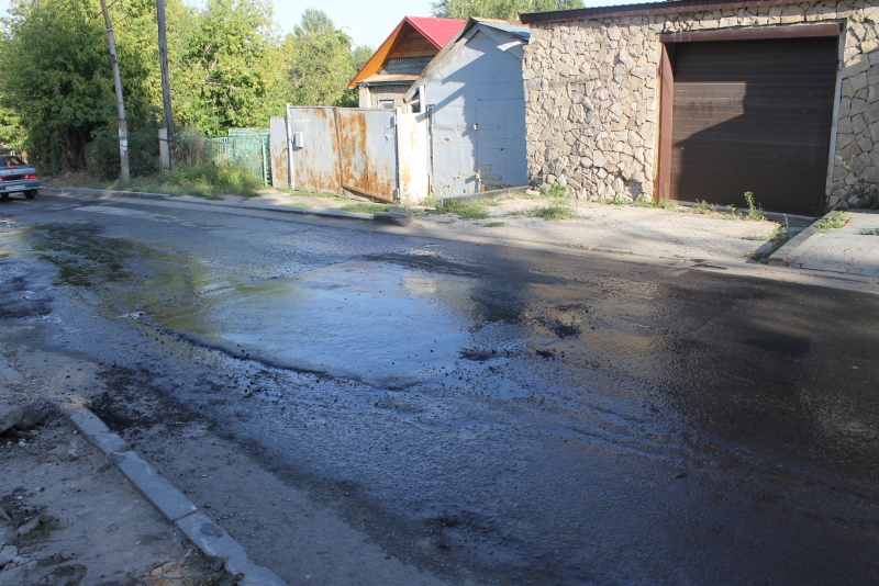 Несмотря на солнечную погоду и отсутствие дождей, продолжается практика укладывания асфальта в лужи. С таким ремонтом столкнулись жители Ленинского района, сообщившие об этом в редакцию «Дорожного контроля». Разбитое дорожное покрытие на улице Офицерской рядом с пересечением с Тверской наконец дождалось ремонта, но перед проведением работ не была устранена течь воды по дороге. Непредвиденное затруднение не остановило рабочих, и новый асфальт был уложен прямо в заполненные водой ямы.