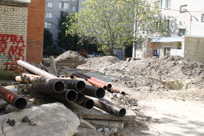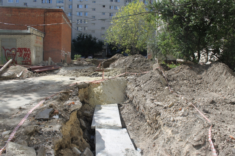 Двор на 3-м Детском проезде не единственный в Октябрьском районе, который столкнулся с необходимостью замены коммуникаций перед проведением благоустройства. Затянувшийся ремонт у дома №63/65 по улице Новоузенской, на который также жаловались жители в редакцию «Дорожного контроля», связан с заменой труб тепловыми сетями.