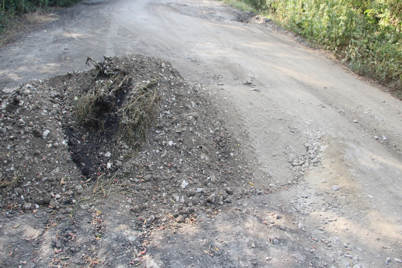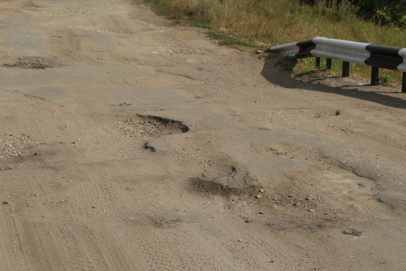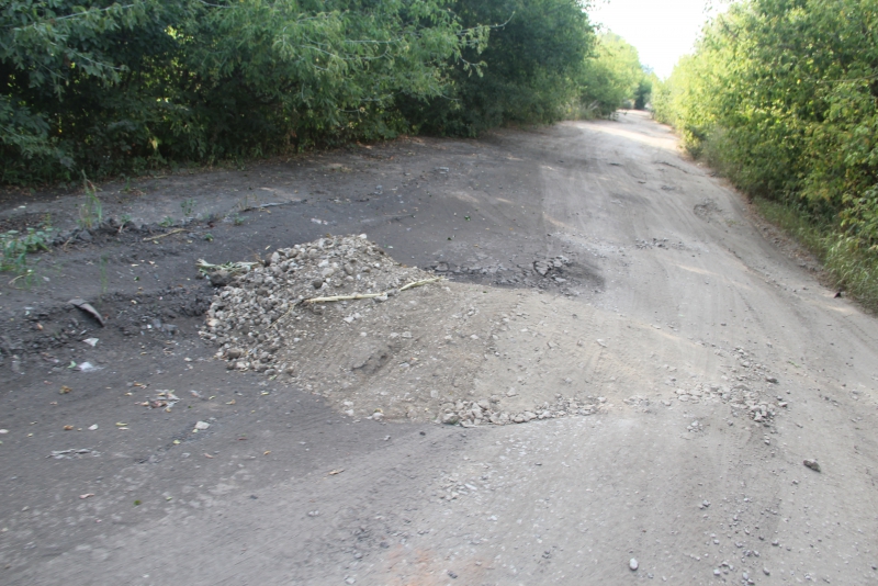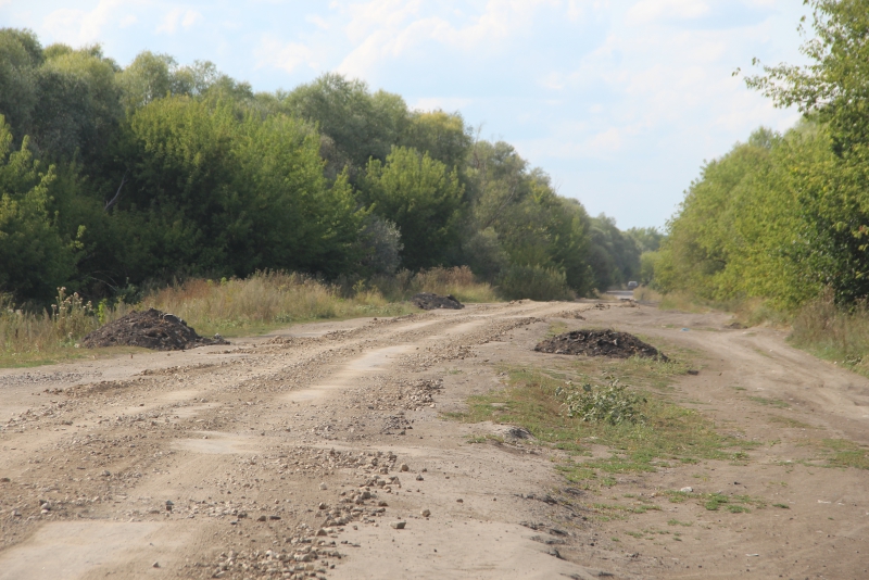 Какое-то подобие восстановительных работ на дороге заметно со стороны Аркадака. Но не потому, что она становится ровной, а потому, что на пути встречаются кучи инертного материала, так и не раскиданного по ямам. Лежат они в таком виде уже больше 3 недель и добавляют колорита разбитой дороге. Раскидать кучи удосужились только на первых ста метрах после моста на выезде из Аркадака. Как уточнил местный житель, после дождя состоящий из земли и щебня материал, которым отсыпают дорогу, превращается в грязевую кашу. Такое устранение дефектов, не сказать, что увеличивает безопасность проезда по этому участку.
