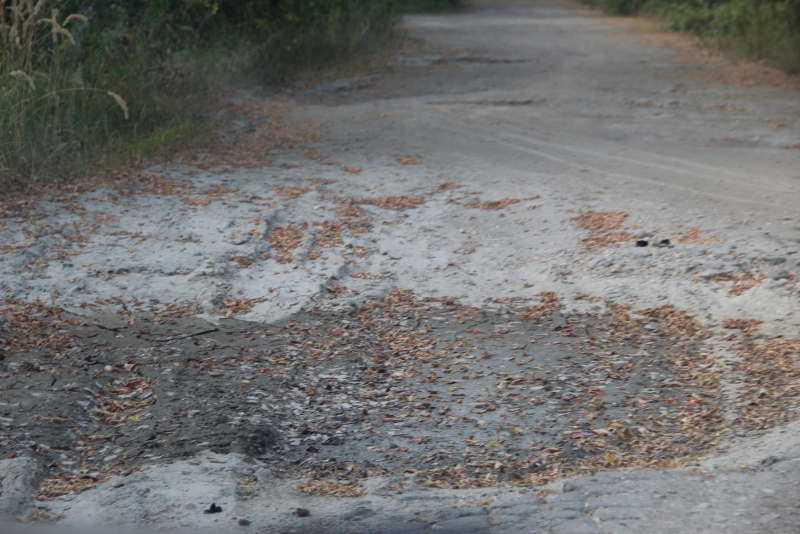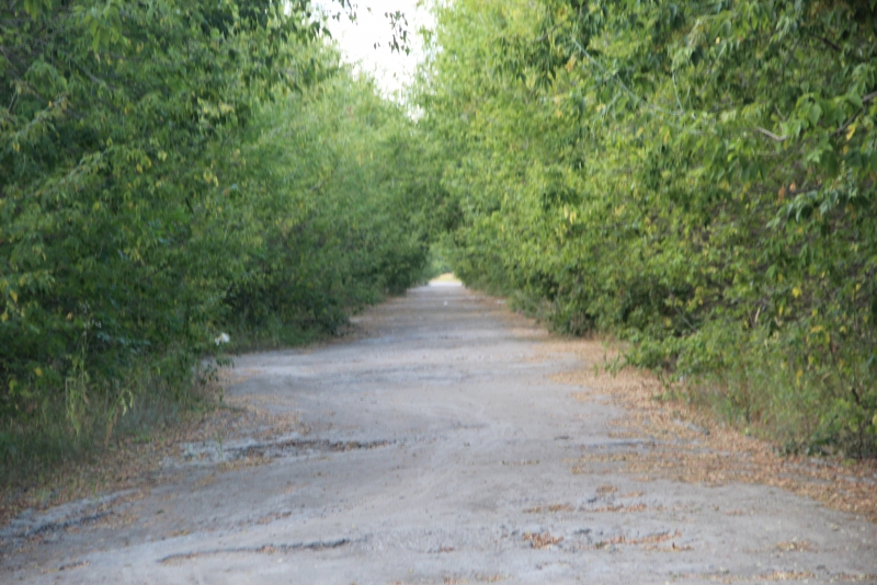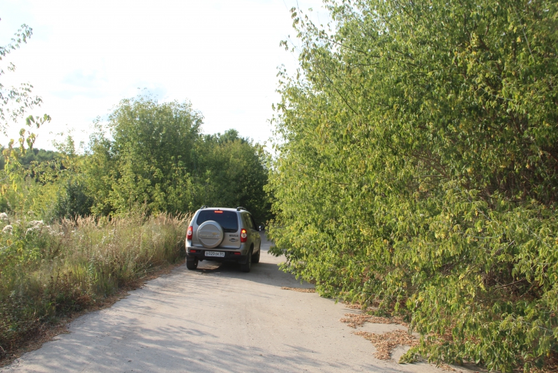 На всем протяжении дороги нам не встретилось ни одного участка, где скорость передвижения перевалила бы за 20 километров в час. Мало того, что покрытие дороги полностью разрушено, так еще в некоторых местах его захватили деревья с кустарниками, чьи склонившиеся ветви крайне трудно не задеть машиной.