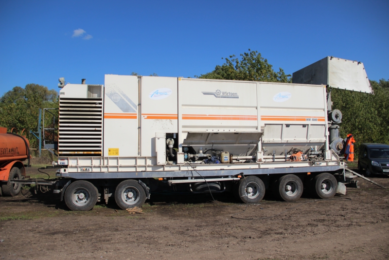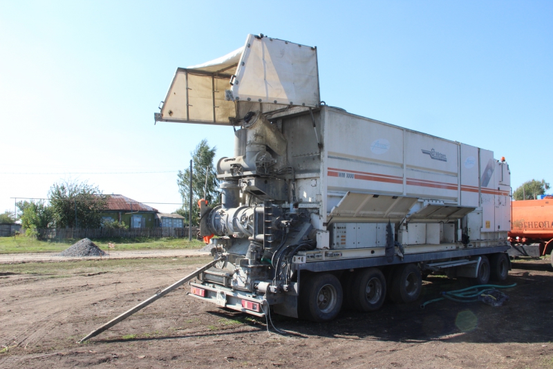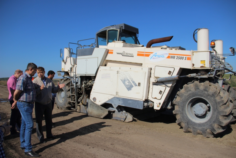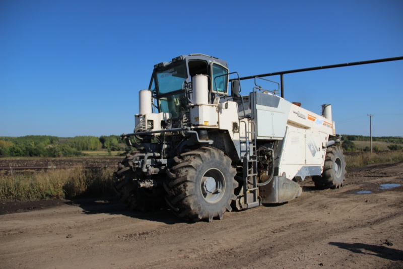 Он пояснил, что, по сути, работа по подготовке основания здесь проходит в 2 этапа. Остатки дорожного покрытия срезает фреза, затем ее выравнивает грейдер и укатывает каток, после чего по нему распределяется щебень, и уже затем проходит специальная дорожная техника, которая перерабатывает заготовленный материал и щебень и добавляет вяжущий элемент.