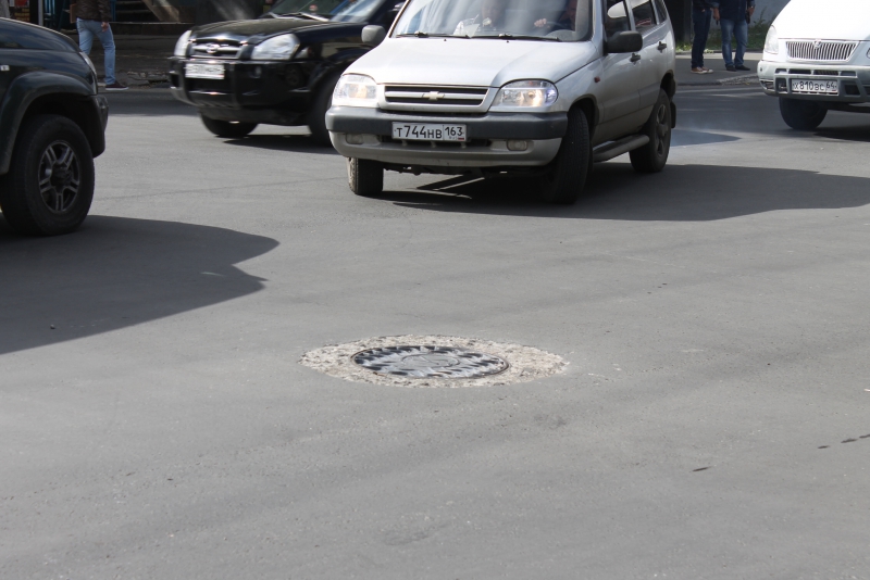 На перекрестке улиц Чапаева и Кутякова, в Кировском районе Саратова устранили разрушенный смотровой колодец, в который в минувший четверг угодила иномарка, что привело к образованию серьезного затора в центре города.