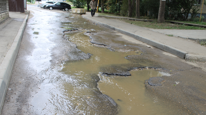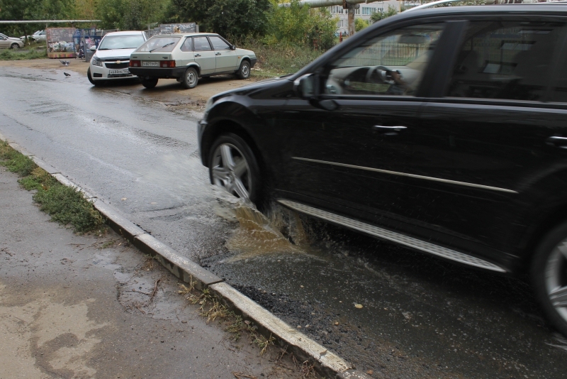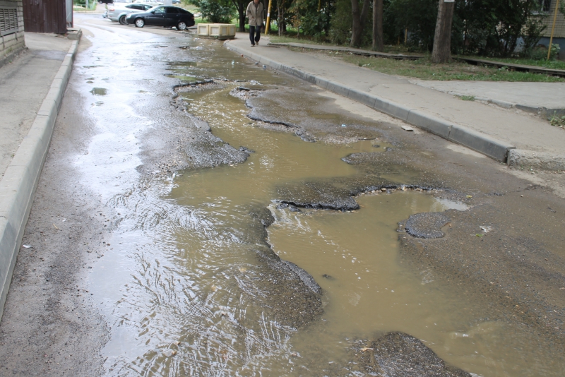 От дома №7б до пересечения с Усть-Курдюмской улицей дорога на Державинской вовсе не пригодна для передвижения на автомобиле. Здесь её размывают коммунальные ручьи, судя по разрушению асфальтового покрытия и глубине промоины, они являются привычным явлением в этом месте.