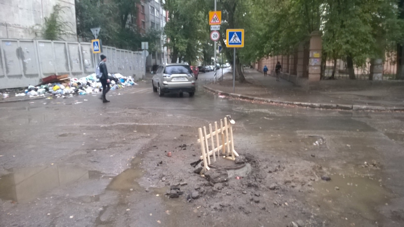 Опасное препятствие, мимо которого ежедневно ходят дети, было обозначено лишь старой дверью. По словам местных жителей, обратившихся в редакцию, проблема не решалась уже очень давно. Но за прошедшее после публикации время ситуация поменялась кардинально.