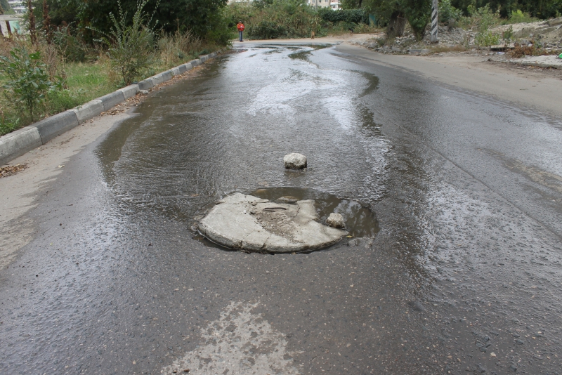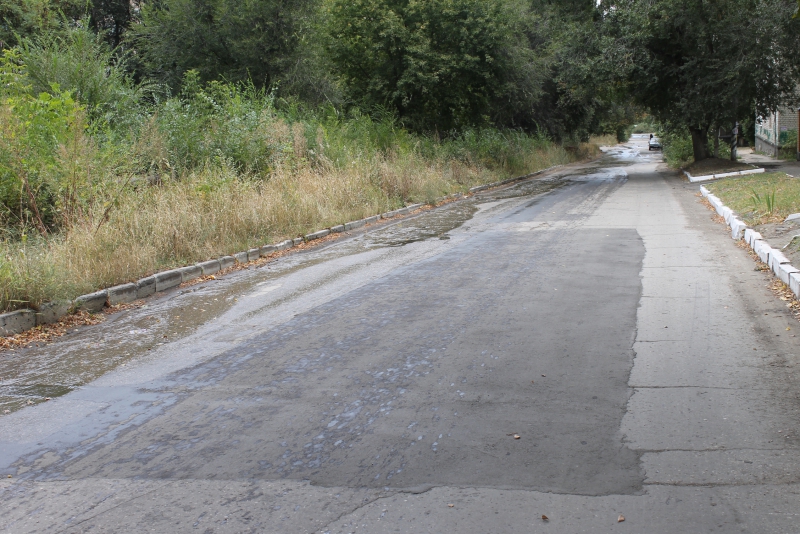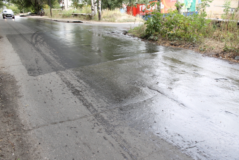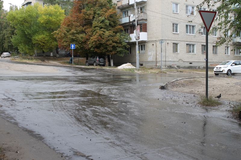 Возможно, работы прекратились из-за коммунальных аварий, которые подтапливают улицу из нескольких источников и уже размывают свежеуложенный асфальт на отремонтированном участке дороги.