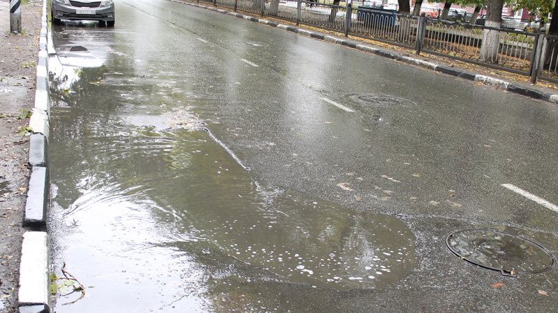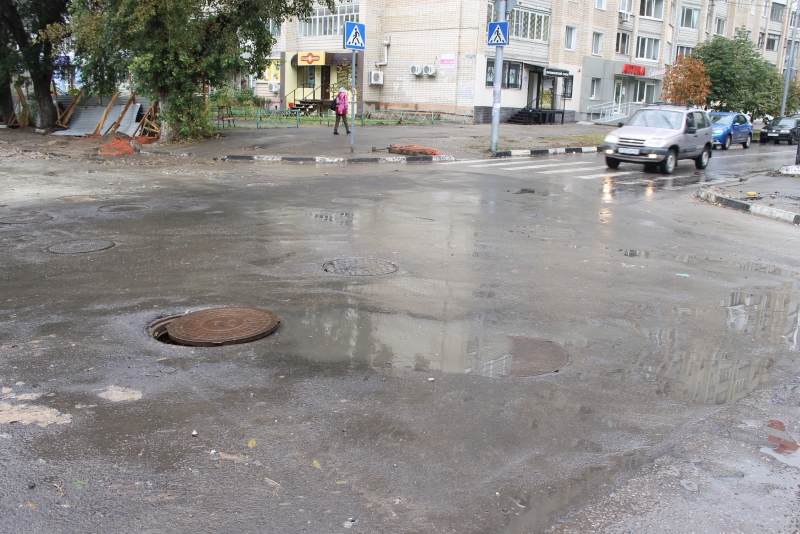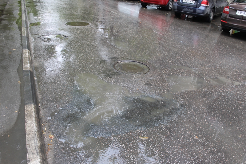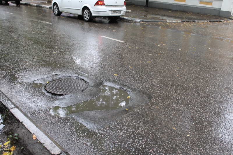 Глубокая, скрытая водой просадка дорожного покрытия, появившаяся в месте проводившихся ранее вскрышных работ, поджидает водителей в первом ряду при движении от Московской до Большой Казачьей. Аналогичное препятствие, возникшее из-за ненадлежащим образом восстановленного твердого покрытия, находится и на удаленном от центра города отрезке улицы Рахова от 1-й Садовой до Соколовой.