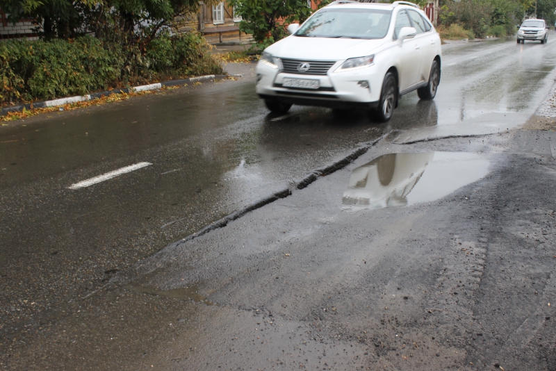 Улица Рахова, отремонтированная в прошлом году, грозит повторить судьбу улиц Чернышевского и Степана Разина, где во многих местах был вскрыт новый асфальт, а на восстановленном покрытии потом начали образовываться просадки.