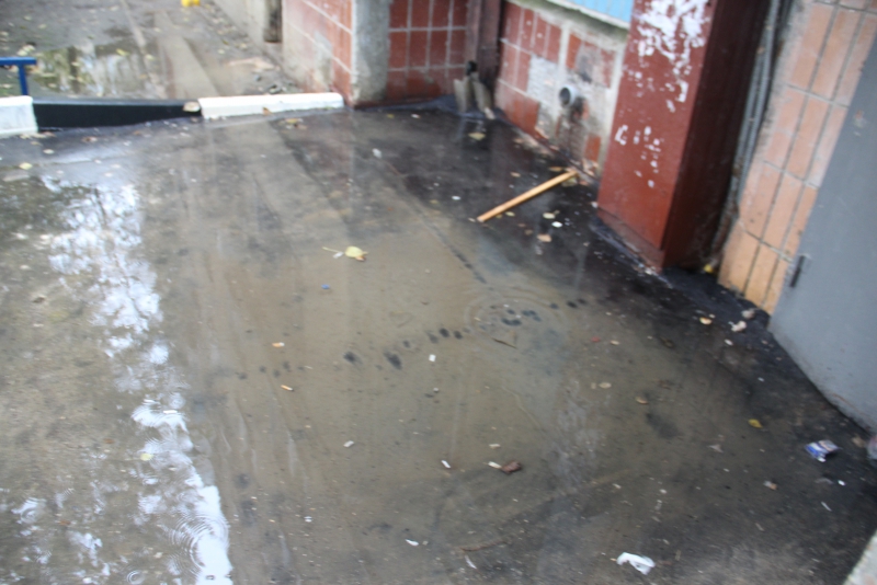 Наступившая дождливая погода позволила «Дорожному контролю» увидеть все воочию. Вода вместо того, чтобы уходить на проезд или в зеленую зону, скапливается рядом с 8-м подъездом, подтапливая мусоропровод и образуя на подходах к нему здоровенную лужу.