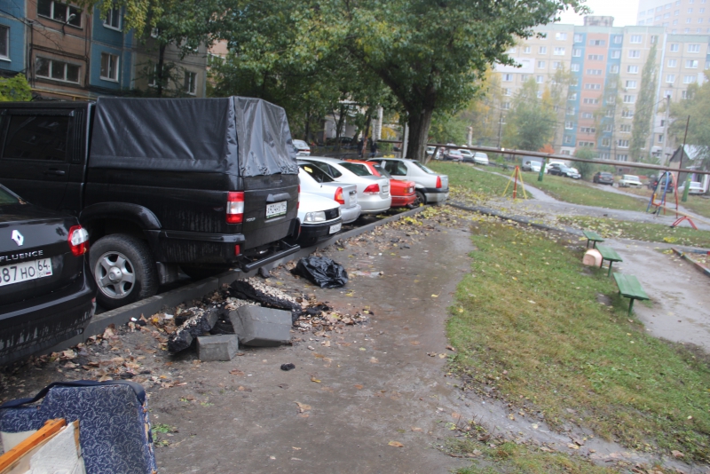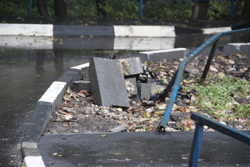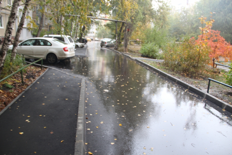 Отметим, что это единственная серьезная проблема с водоотведением в этом дворе, на остальной территории вода благополучно выводится с дворовой территории.