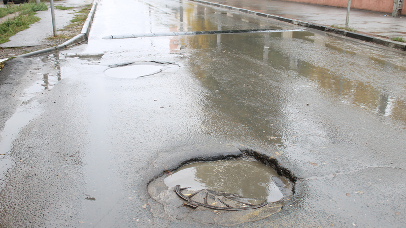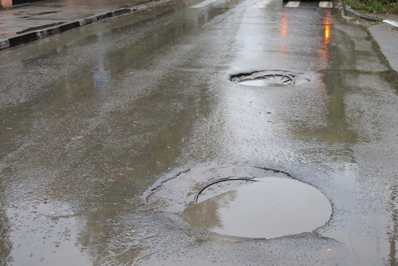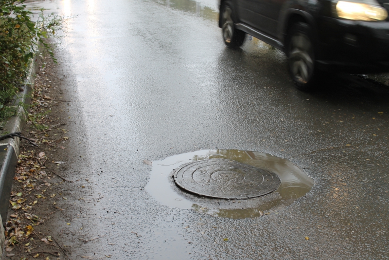 С наступлением дождливой погоды ямы в дорожном покрытии, образованные в результате деформации крышек смотровых колодцев, заполняются водой и становятся плохо различимы для водителей движущегося транспорта.