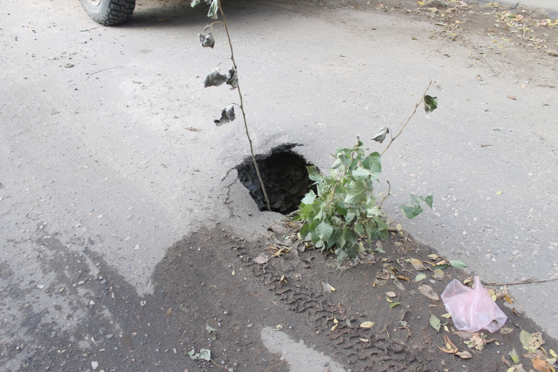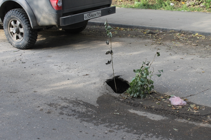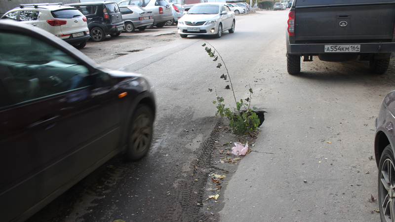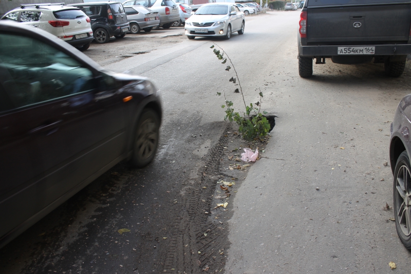 В середине июля «Дорожный контроль» сообщал о просадке дорожного покрытия на улице Белоглинской, у дома №34/38 в Октябрьском районе Саратова. Уже тогда от ямы, достигающей в глубину 15 сантиметров, по асфальту шли трещины, предвещая скорое образование провала. За прошедшее время ситуация только усугубилась, просадка стала глубже, и один из ее краев обрушился, превратившись в полноценный провал, который обозначили веточками.