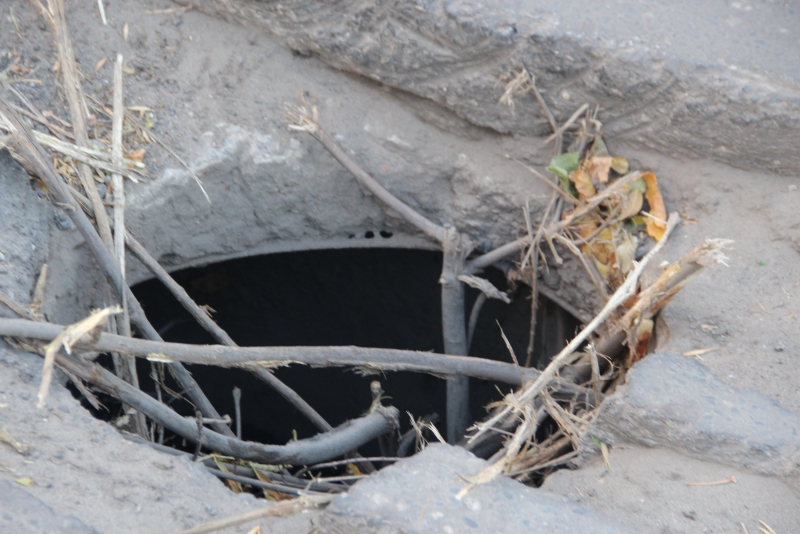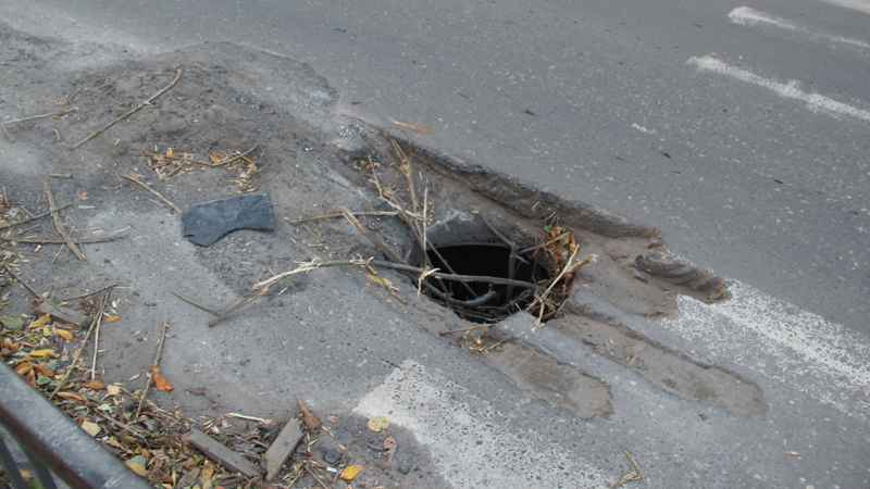 Опасное препятствие образовалось на месте разрушающегося смотрового колодца