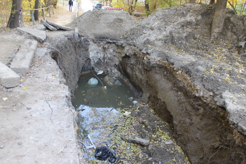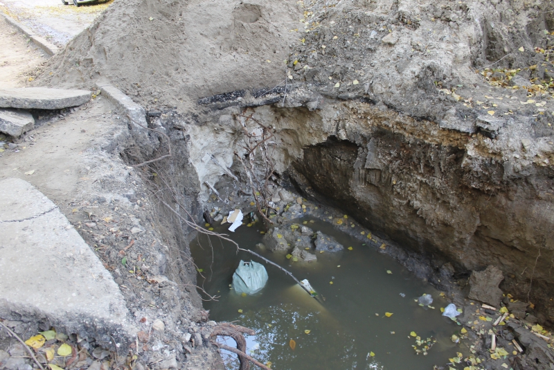 На дороге напротив их дома около месяца назад коммунальными службами был вырыт котлован, полностью перекрывающий дорогу на отрезке улицы от Загороднева до 4-й Прокатной. С тех пор, по словам жильцов, рабочие на объекте не появлялись, а огромная яма, на дне которой скапливаются вода и мусор, остается открытой к радости местных мальчишек.