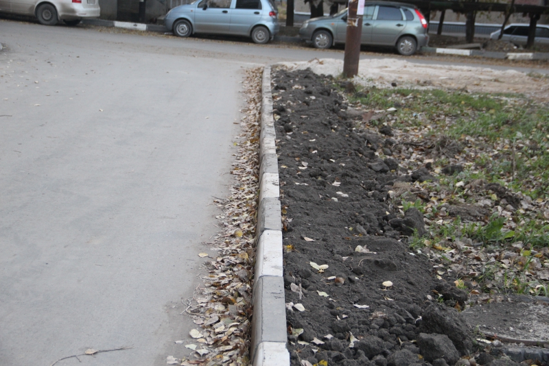 В отремонтированном дворе на Благодарова заменят шатающийся бордюр