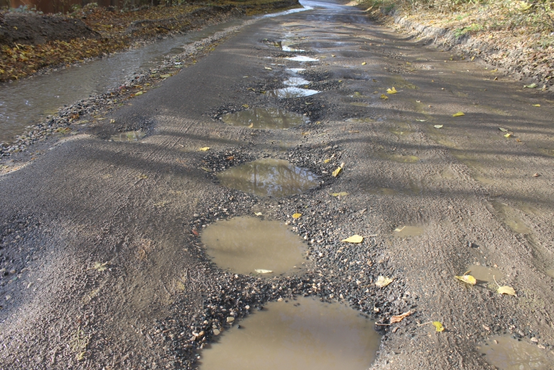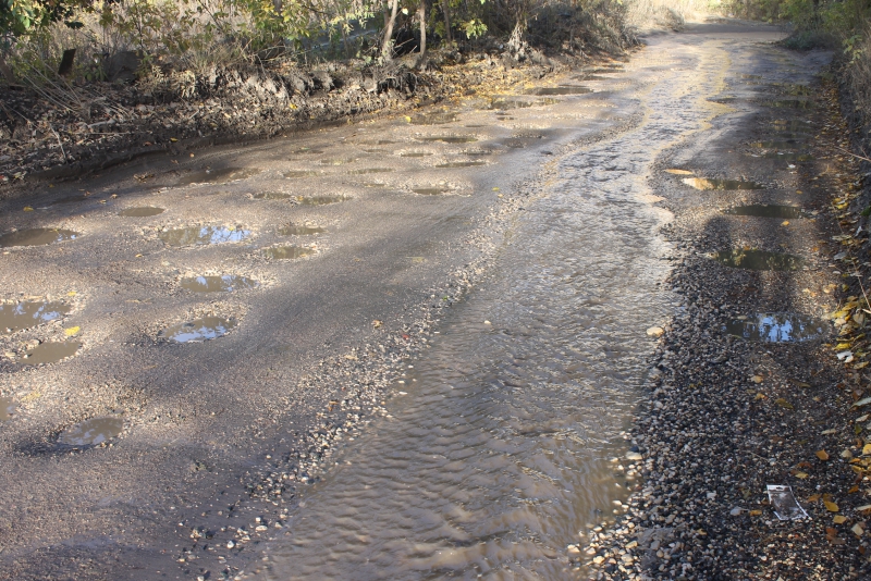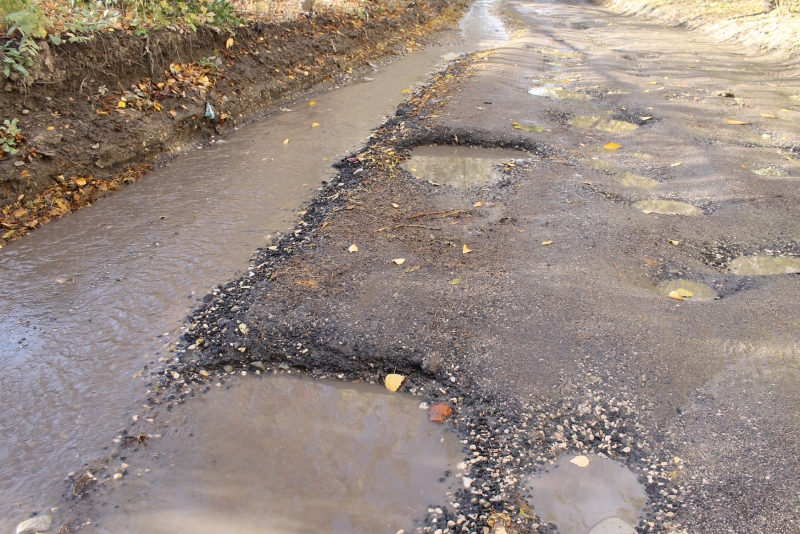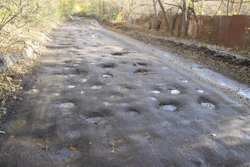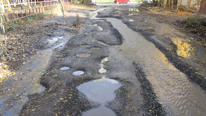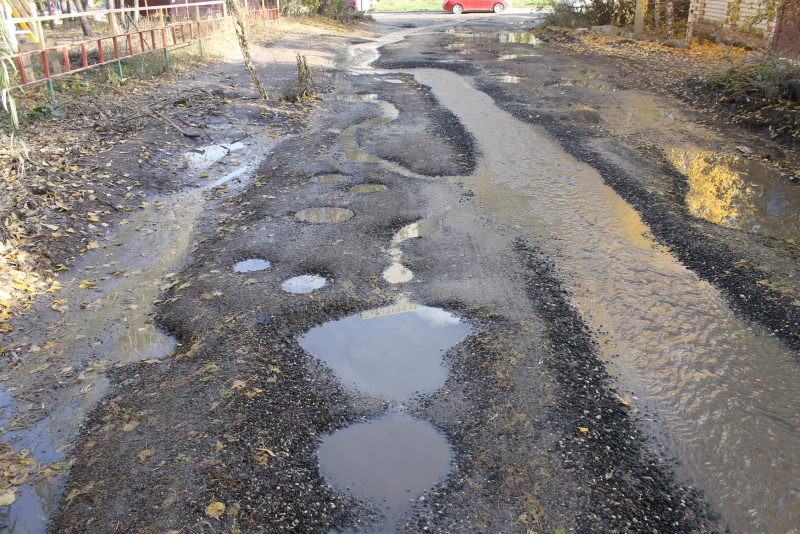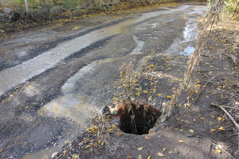 На участке асфальтового покрытия дороги от улицы Генерала Захарова до Вишневой, о котором «ДК» сообщал еще в прошлом году, просто невозможно отыскать живого места. Вся проезжая часть густо покрыта огромным количеством глубоких ям, постоянно текущие ручьи размыли асфальт до щебеночного основания, а в довершение всех бед автомобилисты рискуют угодить в разрушенный люк, совершенно неприметный среди прочих препятствий.