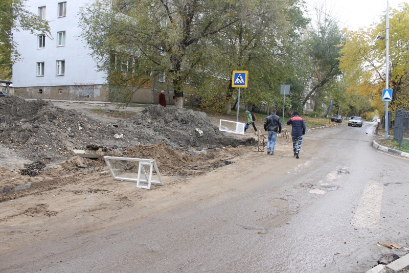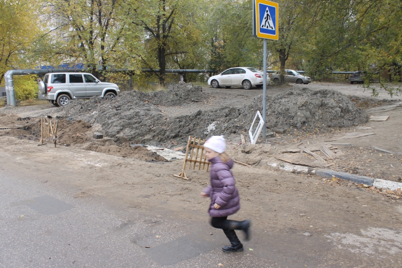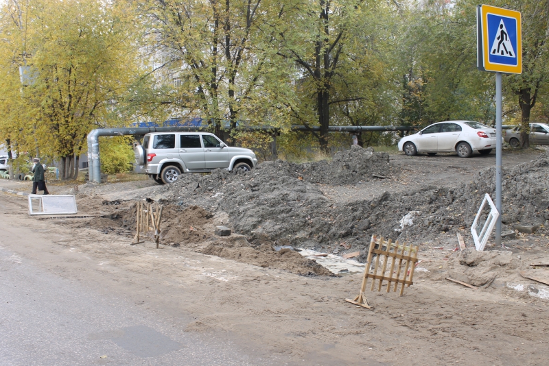 За прошедшие месяцы ситуация изменилась, но отнюдь не в лучшую сторону. Теперь на дороге в месте пешеходного перехода «красуется» новый незаделанный раскоп, появившийся, по словам жильцов, еще в мае. Широкий котлован, засыпанный песком, огорожен обломками деревянных заборчиков и старыми рамами с разбитыми стеклами. Кроме того, яма практически полностью блокирует одну из полос движения, в результате чего на данном участке часто образуются заторы из пытающихся разъехаться встречных потоков транспорта.