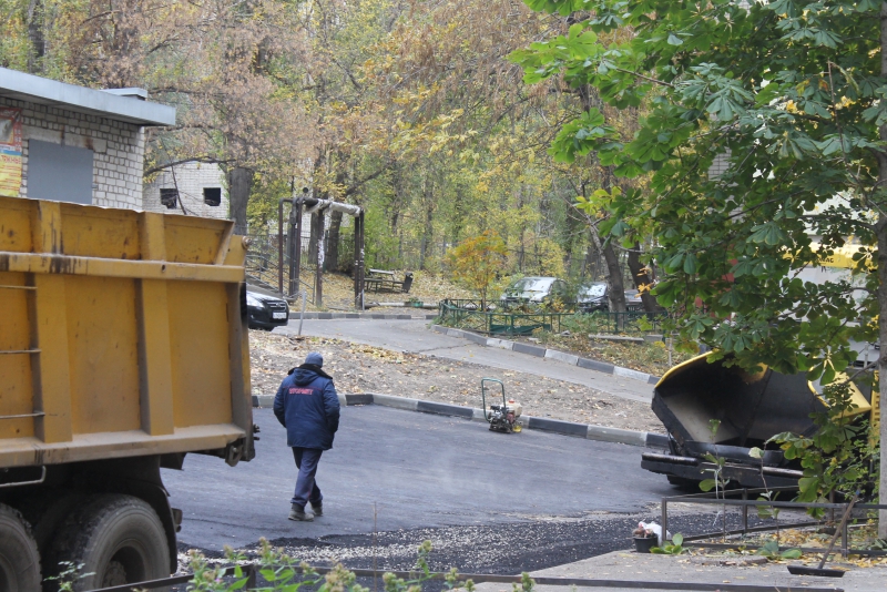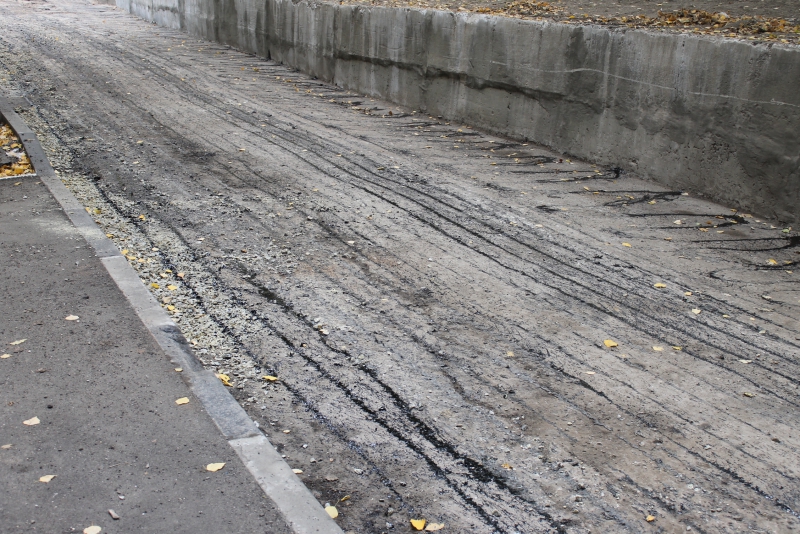 После первого снега подрядчик приступил к асфальтировке двора, словно специально дожидался неблагоприятных погодных условий. Справедливости ради отметим, что снег на земле уже растаял и осадки не выпадают, однако температурный режим около нуля градусов требует пристального внимания к технологии укладки горячих смесей и использованию их с поверхностно-активными веществами (ПАВ) и активированными минеральными порошками. В противном случае производить данный вид работ не допускается СНиПом.