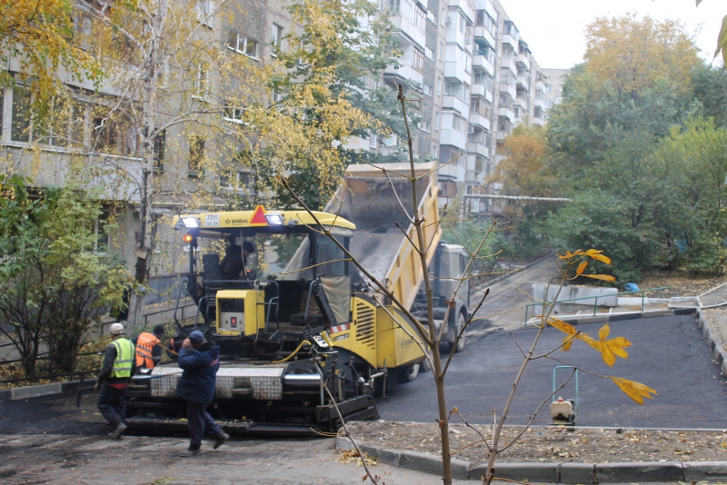 Дождавшись первого снега, в Заводском заасфальтировали двор