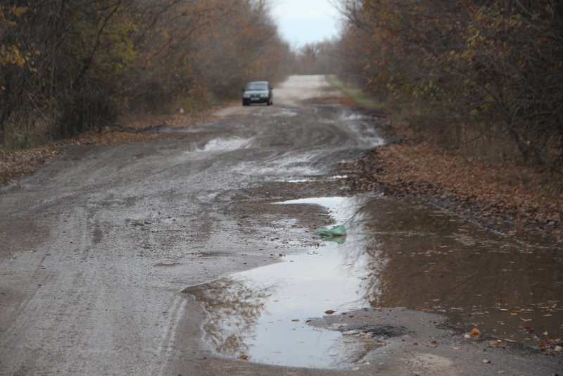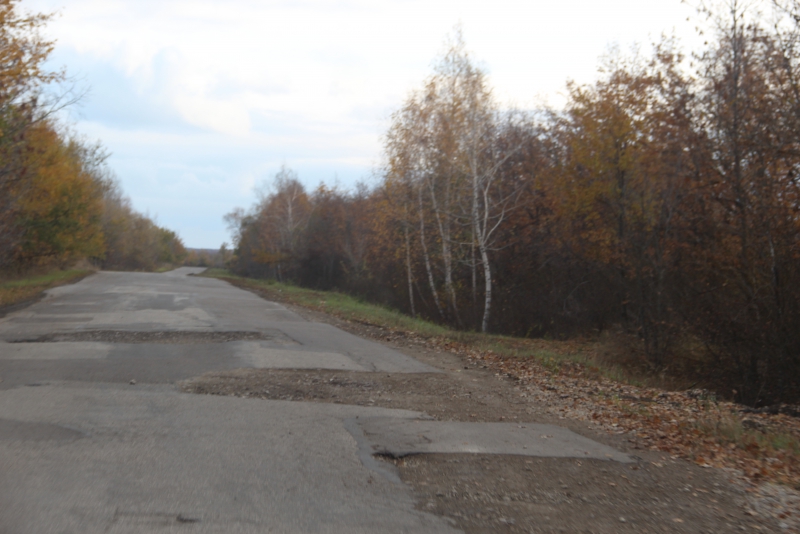 В начале трассы со стороны Калининска, как уже писали, можно встретить участки, подготовленные под ремонт: выбиты карты, подсыпан щебень, только нет асфальта. Давно ли они стоят в таком виде - неизвестно. По обочинам расставлены колышки, заботливо обозначающие границы отведённого под ремонт участка. Такие места встречаются только несколько первых километров, а дальше с каждой минутой пути покрытие становится все хуже и хуже вплоть до самой границы с Волгоградской областью.