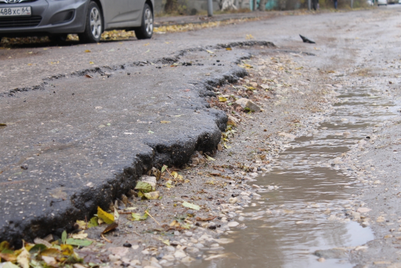 Жители 1-го Жилучастка сообщили в редакцию «Дорожного контроля» о крайне запущенном состоянии автомобильной дороги по Киевскому проезду в Заводском районе Саратова.