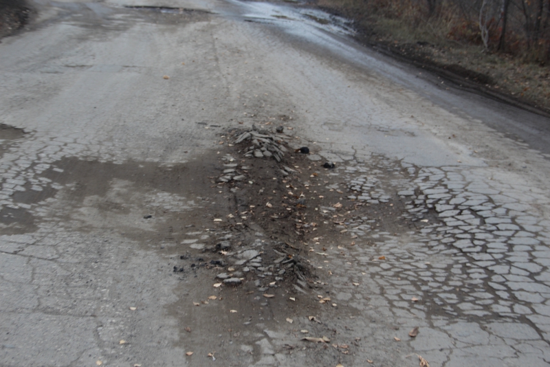 В самом Черкасском ситуация с дорожным покрытием становится только хуже. Ровные участки пропадают вовсе, в результате автомобилям приходится ехать по ямам, полностью оккупировавшим проезжую часть. Стараясь выбрать наименее глубокие из них и при этом не обрызгать пешеходов, которые также используют для передвижения дорогу, водители вынуждены сбрасывать скорость до минимума. Но как выяснилось, это еще не предел разрушений, которые могут произойти с автодорогой без должного внимания к ней.