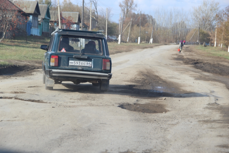 Сотрудники «Дорожного контроля», побывавшие с инспекцией в Вольском районе Саратовской области, в очередной раз убедились, что чем дальше дорога находится от областного и районного центров, тем хуже качество покрытия и выполняемых работ по ее содержанию. Региональная дорога «Вольск-Черкасское-Калмантай-граница Ульяновской области» стала очередным тому подтверждением. Ужасные дороги являются одним из факторов, которые приводят к вымиранию населенных пунктов, отрезанных бездорожьем от социальных объектов, возвращая территорию области в состояние Дикого Поля, на границах которого когда-то и было основано село Черкасское в начале XVIII века. Некогда районный центр и рабочий поселок, теперь Черкасское лишь крупное, по саратовским меркам, село с четырьмя тысячами жителей и административный центр Черкасского муниципального образования. Посетить малую Родину героя Советского Союза Зинаиды Маресевой «Дорожный контроль» решил после обращения местного жителя Владимира, кратко и емко сформулировавшего ситуацию с качеством дороги, идущей к селу: «Дорога с Вольска на Черкасское после реки Терешка в Покровке и дальше разбита вдрызг».
