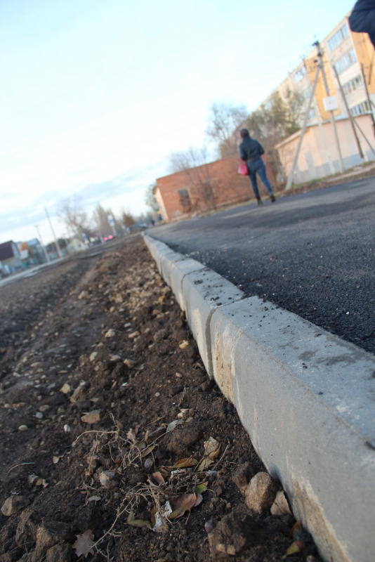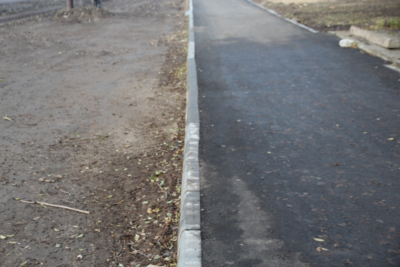 Свежеуложенная пешеходная зона растянулась по Юбилейной на полкилометра и на первый взгляд отличается в лучшую сторону от того, что было сделано на Мелиоративной. По крайней мере, повсеместного выкрашивания асфальта и шатающихся бордюров там не наблюдается. По всей видимости, при возведении тротуара на Юбилейной был учтен печальный опыт Мелиоративной и с бюджетными деньгами, читай «законом», шутить не стали, укрепив бордюр бетоном.